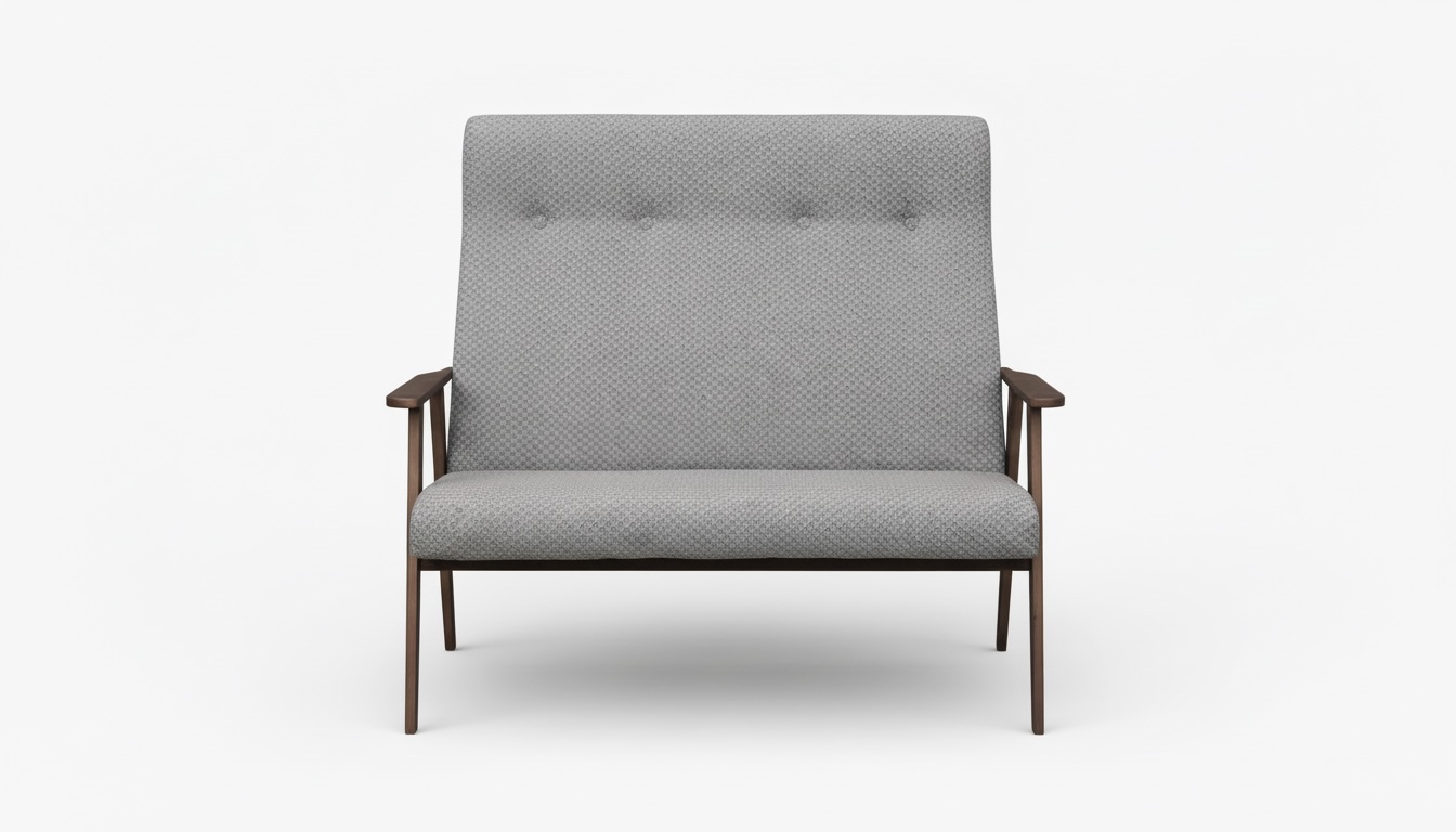 Современный, подходит к стилям ретро и мнинмализма. К дивану в комплект есть кресло и кресло-качалка.