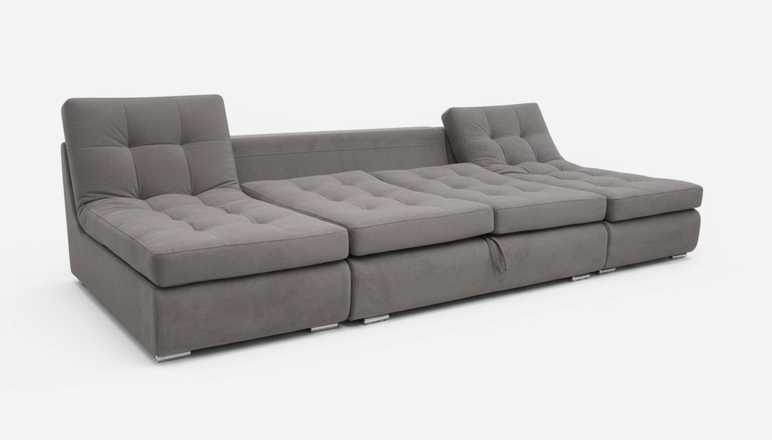 Очень удобный угол наклона спинки, комфортная посадка, в оттоманках большие ящики, модули можно скомплектовать по желанию