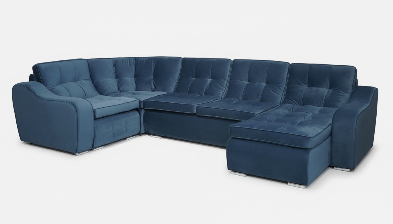 Модульная система позволит скомплектовать диван нужного размера и функционала, сторона угла универсальна, большой ящик в оттоманке, удобное спальное место, простое раскладывание, подходит для зонирования помещений.