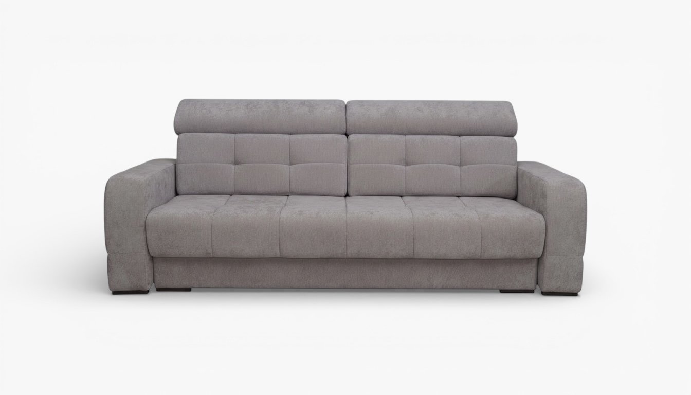 Комфортный диван для ежедневного сна. Подголовники регулируются отдельно для каждого посадочного места. Глубокий. Можно скомплектовать с оттоманкой.