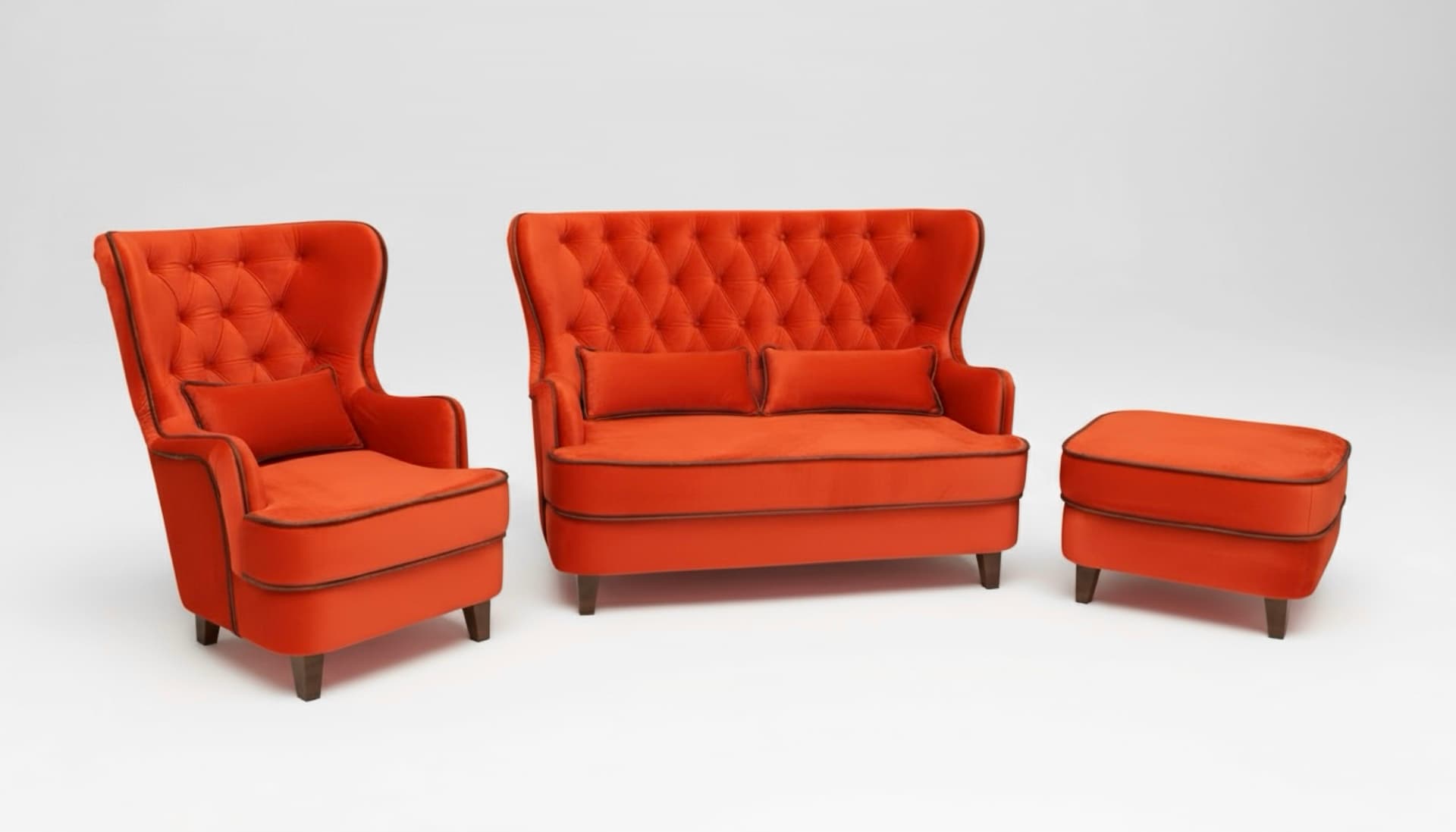 интерьерный, широкий, на высоких деревянных ножках, в комплекте с диваном и креслом и отдельно