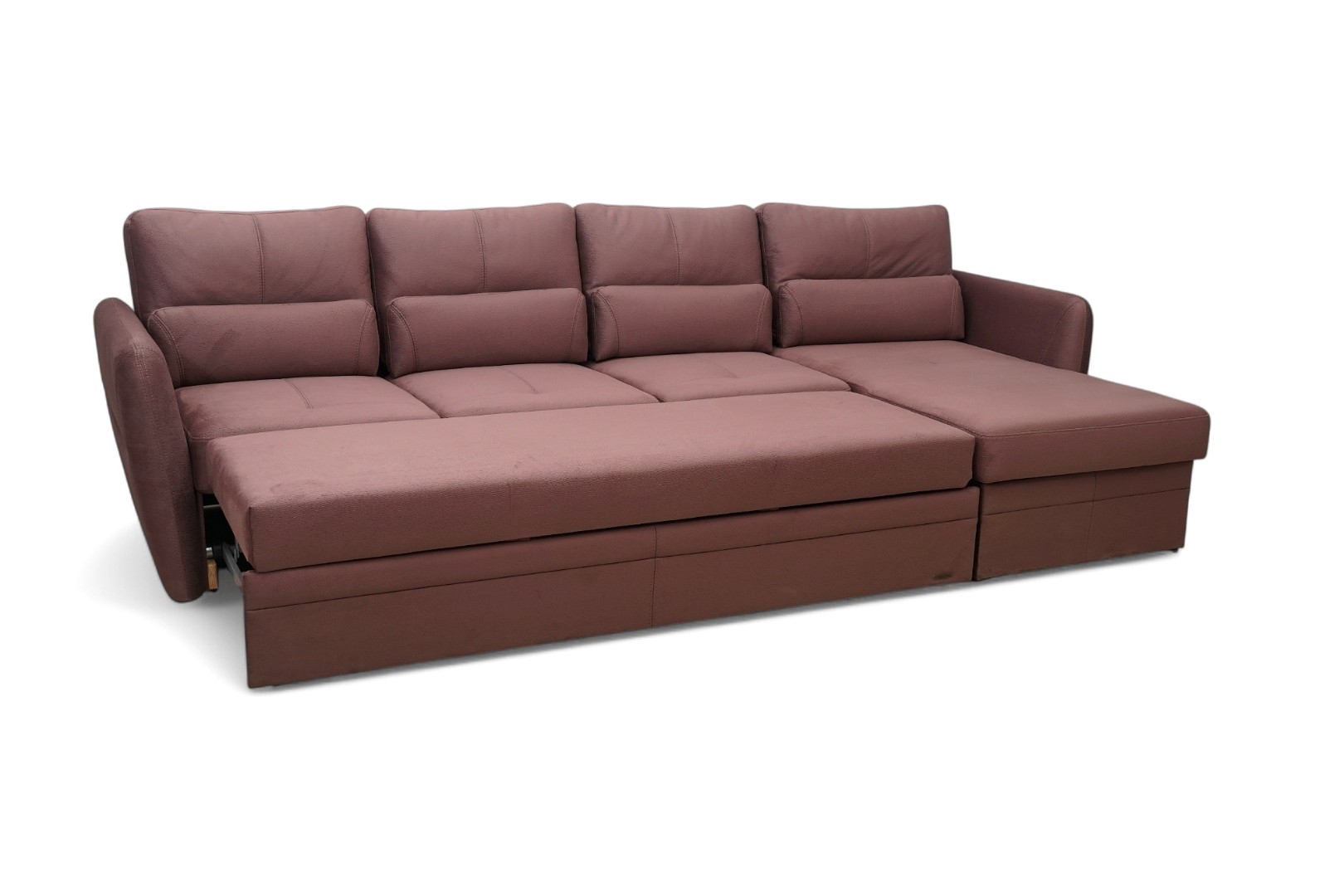 Удобная посадка с высоким изголовьем и приспинным валиком, ящик в оттоманке, надежный механизм раскладывания.