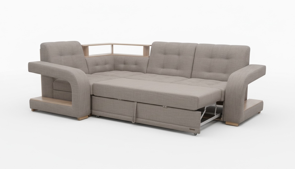комфортный, надежный, большое спальное место, ящик для хранения, ламинированная полка в угловой части