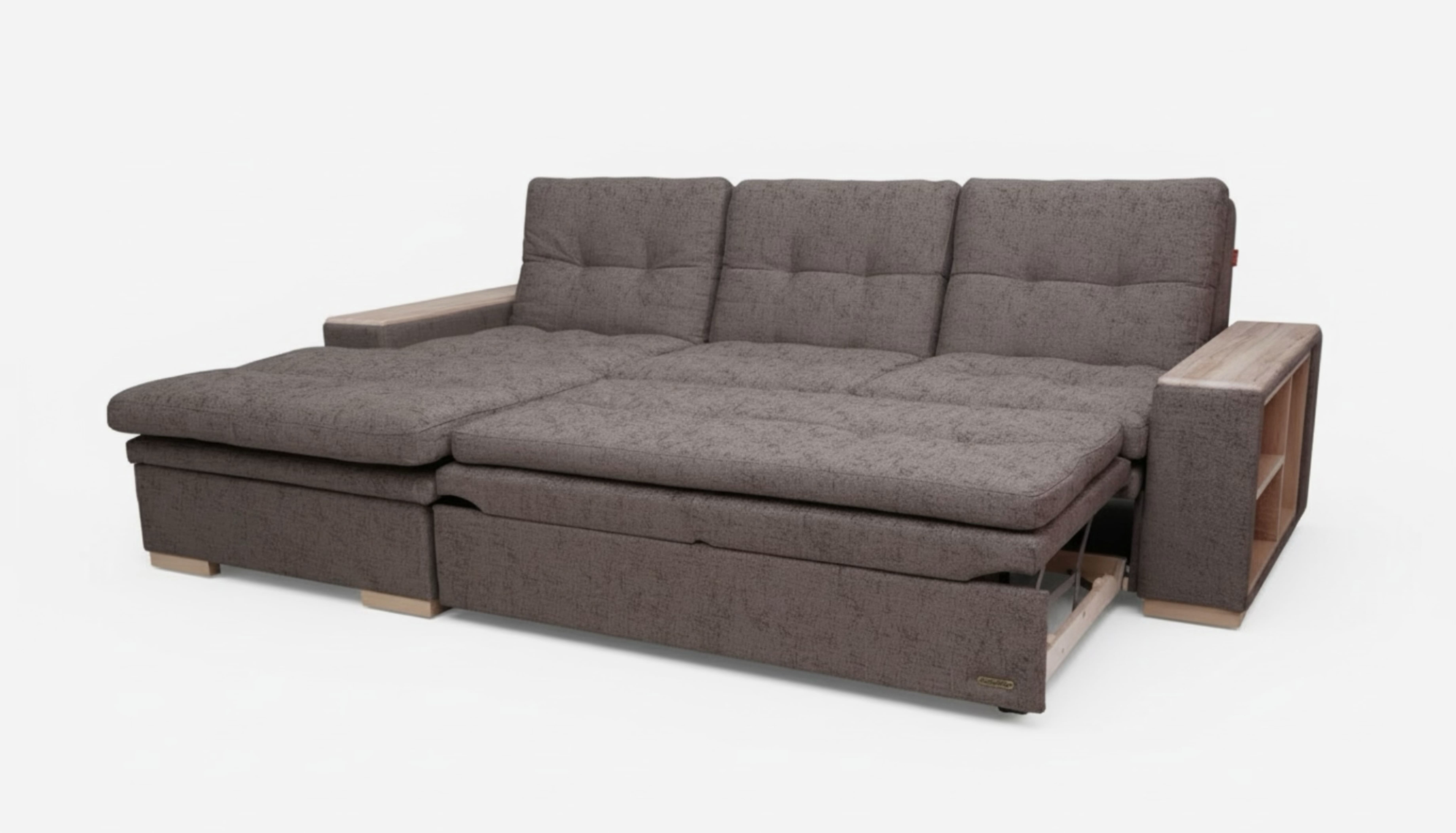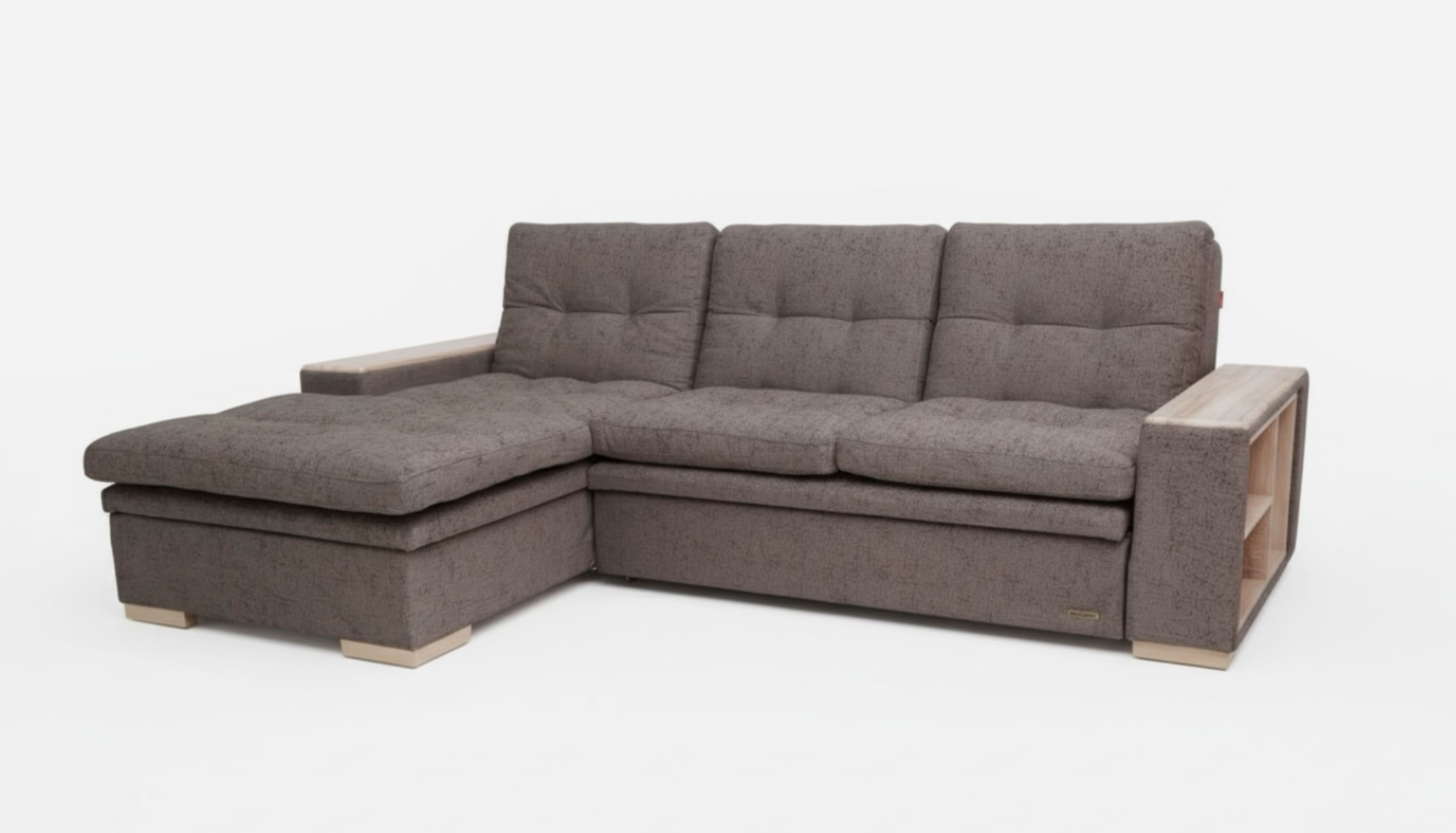 большой ящик, удобная посадка, боковые полочки в подлокотнике, практичная накладка МДФ на подлокотнике